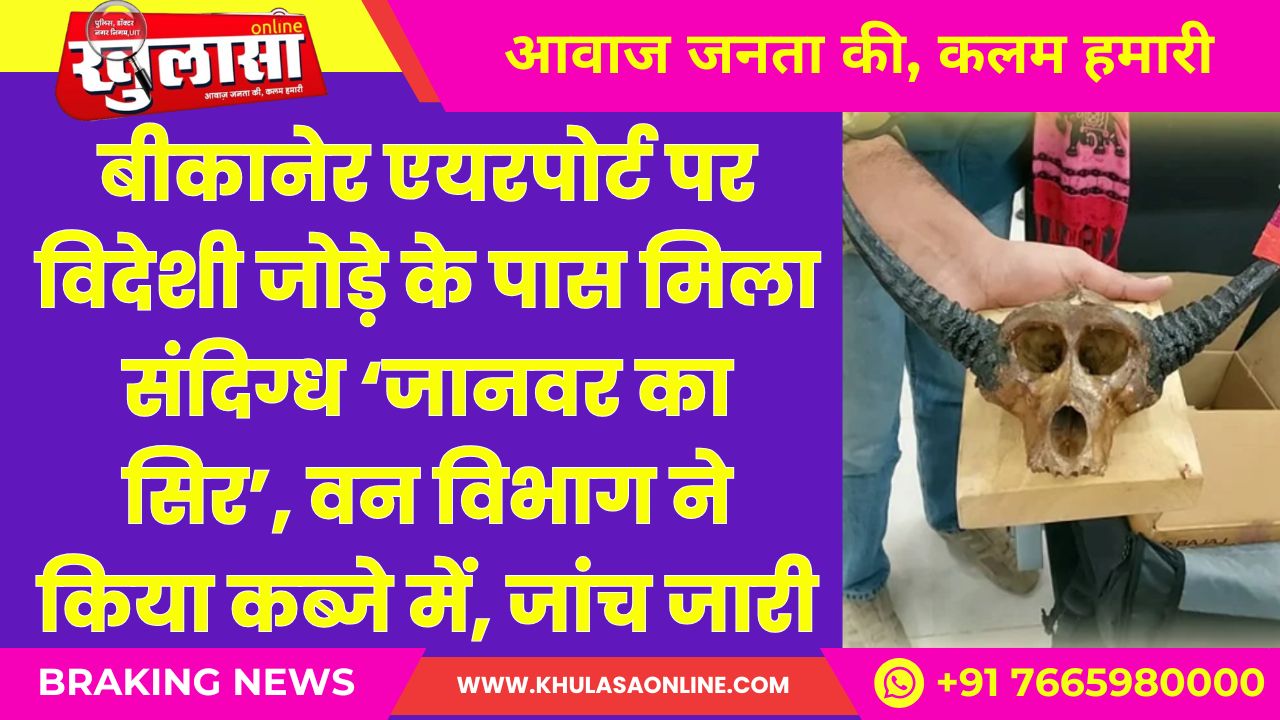 बीकानेर एयरपोर्ट पर विदेशी जोड़े के पास मिला संदिग्ध ‘जानवर का सिर’, वन विभाग ने किया कब्जे में, जांच जारी