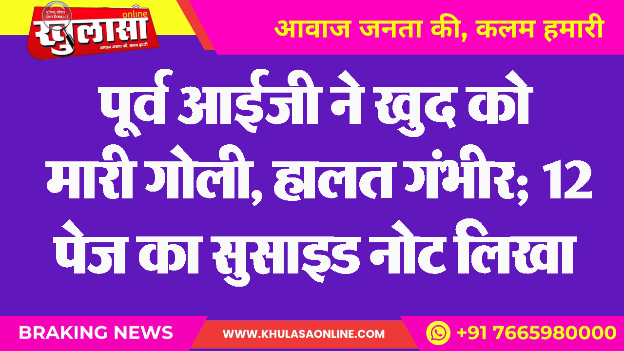 पूर्व आईजी ने खुद को मारी गोली, हालत गंभीर; 12 पेज का सुसाइड नोट लिखा