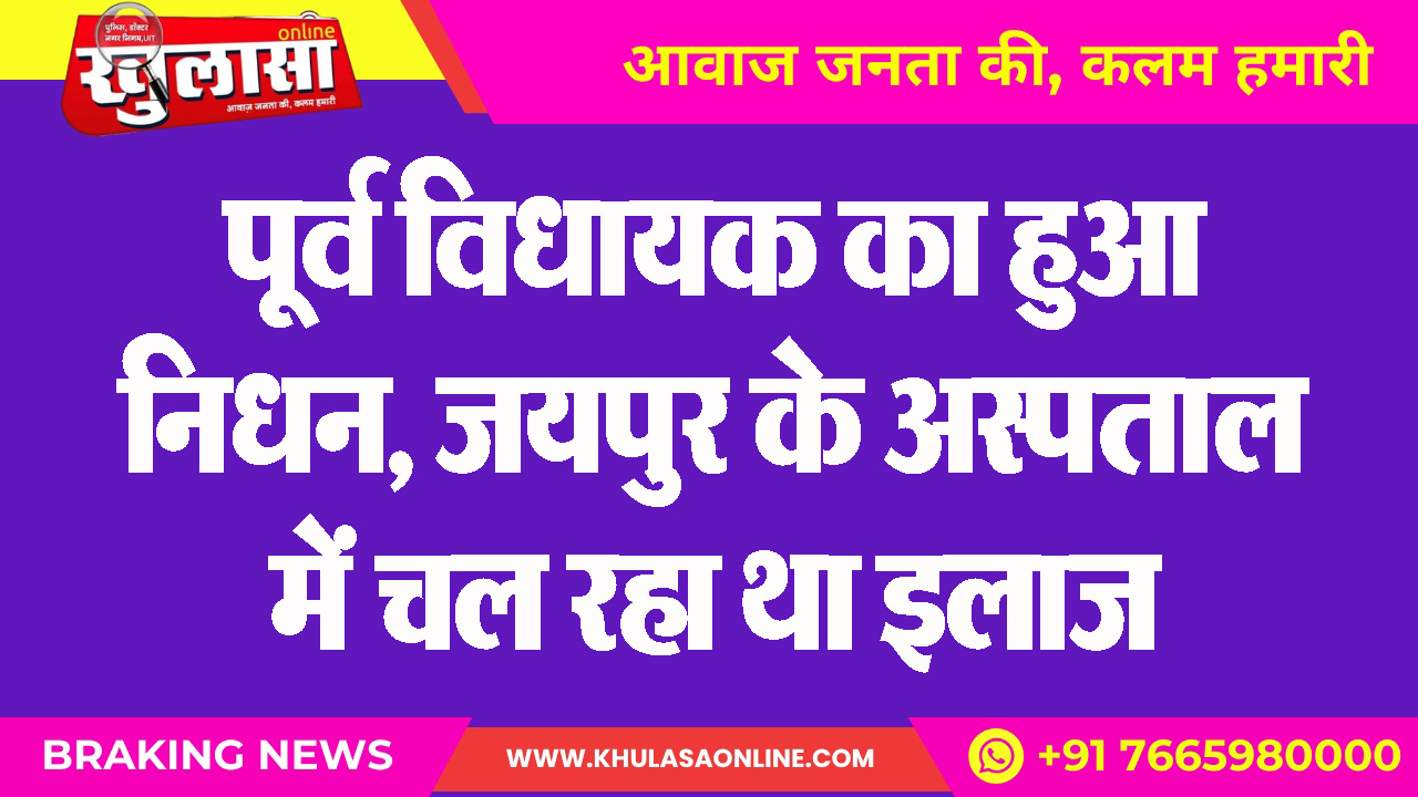 पूर्व विधायक का हुआ निधन, जयपुर के अस्पताल में चल रहा था इलाज