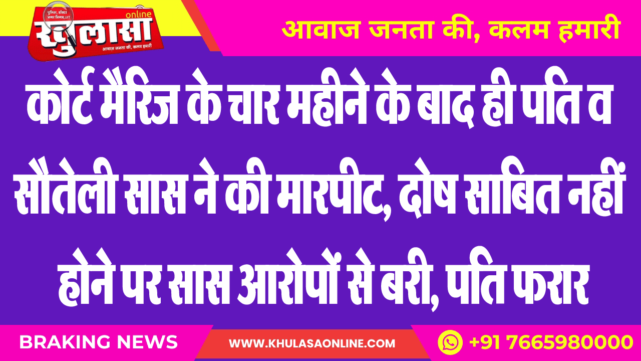 कोर्ट मैरिज के चार महीने के बाद ही पति व सौतेली सास ने की मारपीट, दोष साबित नहीं होने पर सास आरोपों से बरी, पति फरार