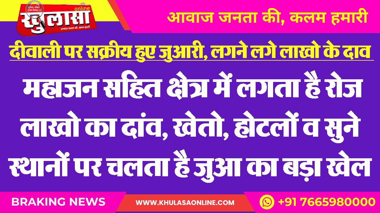 दीवाली पर सक्रीय हुए जुआरी, लगने लगे लाखो के दाव : महाजन सहित क्षेत्र में लगता है रोज लाखो का दांव, खेतो, होटलों व सुने स्थानों पर चलता है जुआ का बड़ा खेल