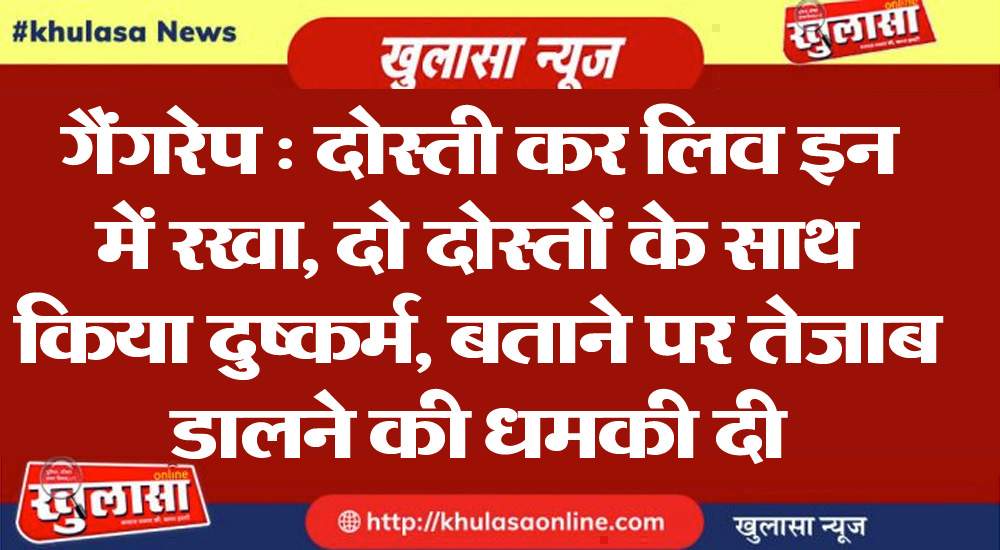 गैंगरेप:दोस्ती कर ‘लिव इन’ में रखा, 2 दोस्तों के साथ किया दुष्कर्म, बताने पर तेजाब डालने की धमकी दी