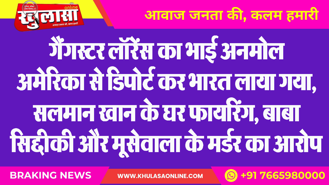 गैंगस्टर लॉरेंस का भाई अनमोल अमेरिका से डिपोर्ट कर भारत लाया गया, सलमान खान के घर फायरिंग, बाबा सिद्दीकी और मूसेवाला के मर्डर का आरोप