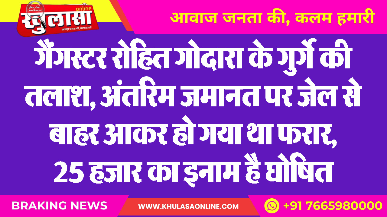 गैंगस्टर रोहित गोदारा के गुर्गे की तलाश, अंतरिम जमानत पर जेल से बाहर आकर हो गया था फरार, 25 हजार का इनाम है घोषित