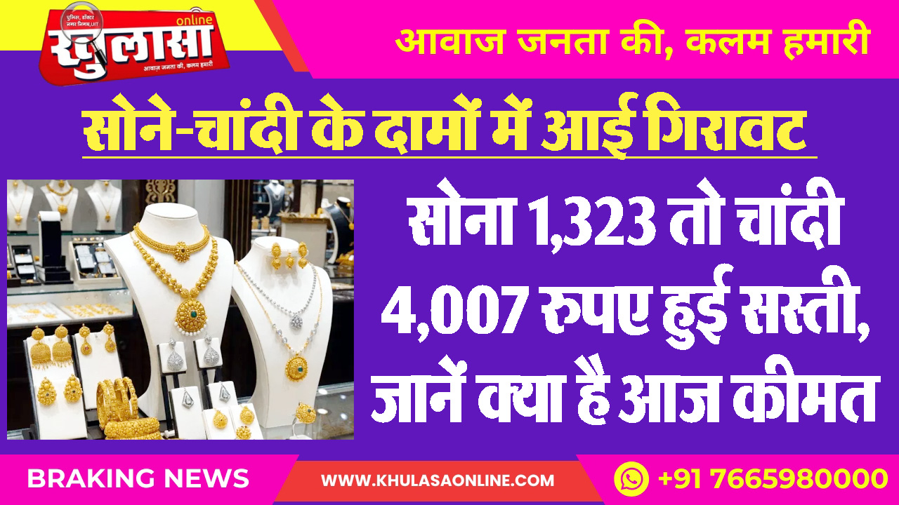 सोने-चांदी के दामों में आई गिरावट : सोना 1,323 तो चांदी 4,007 रुपए हुई सस्ती, जानें क्या है आज कीमत