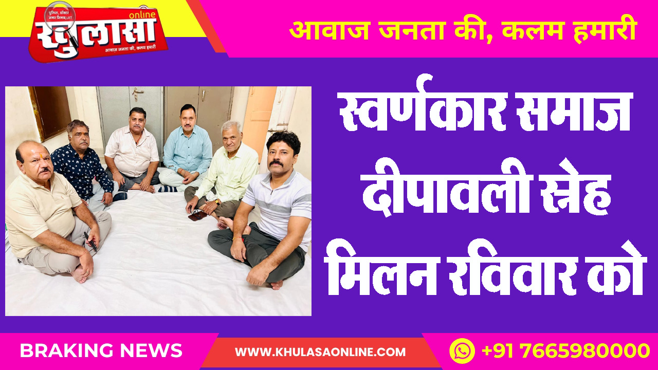 स्वर्णकार समाज दीपावली स्नेह मिलन रविवार को