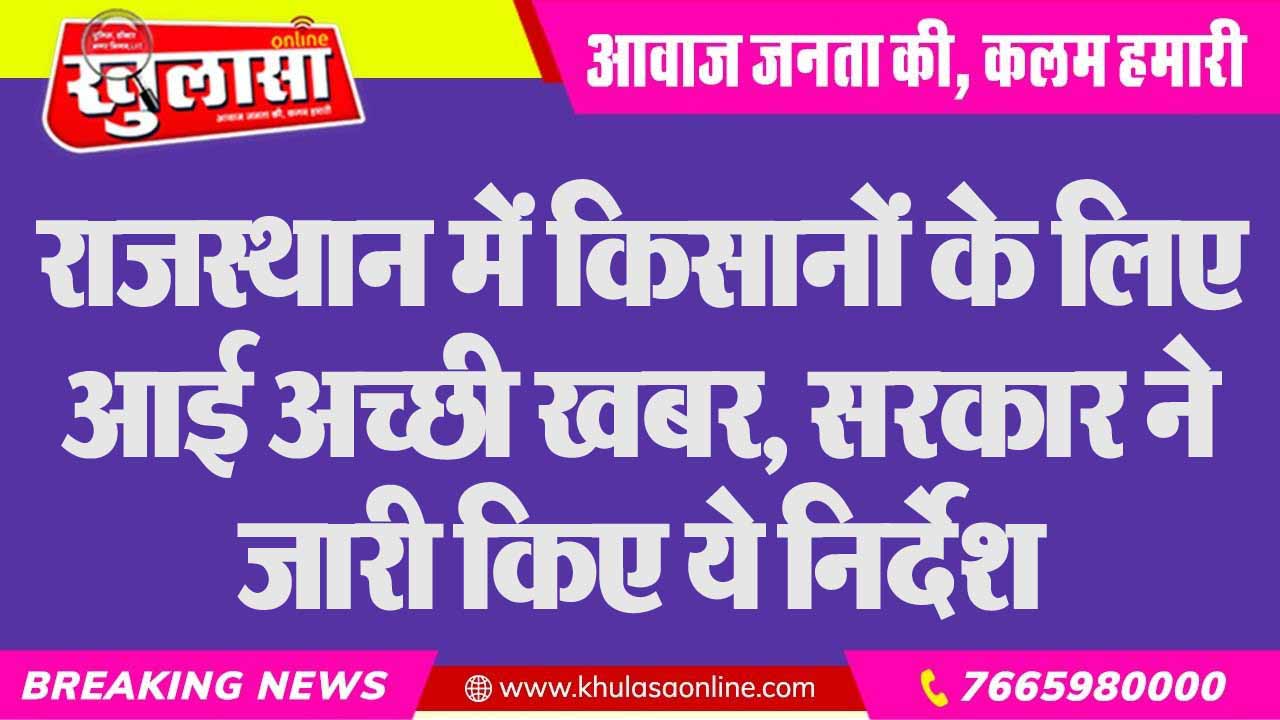 राजस्थान में किसानों के लिए आई अच्छी खबर, सरकार ने जारी किए ये निर्देश