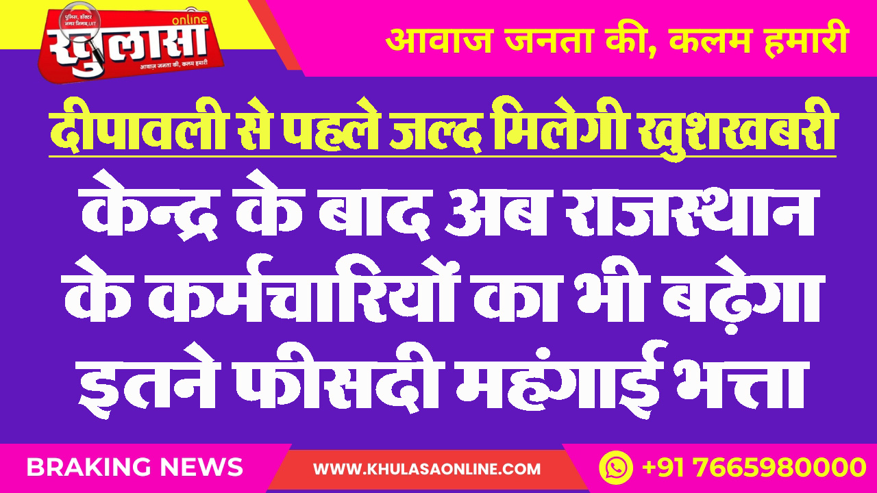 दीपावली से पहले जल्द मिलेगी खुशखबरी, केन्द्र के बाद अब राजस्थान के कर्मचारियों का भी बढ़ेगा इतने फीसदी महंगाई भत्ता
