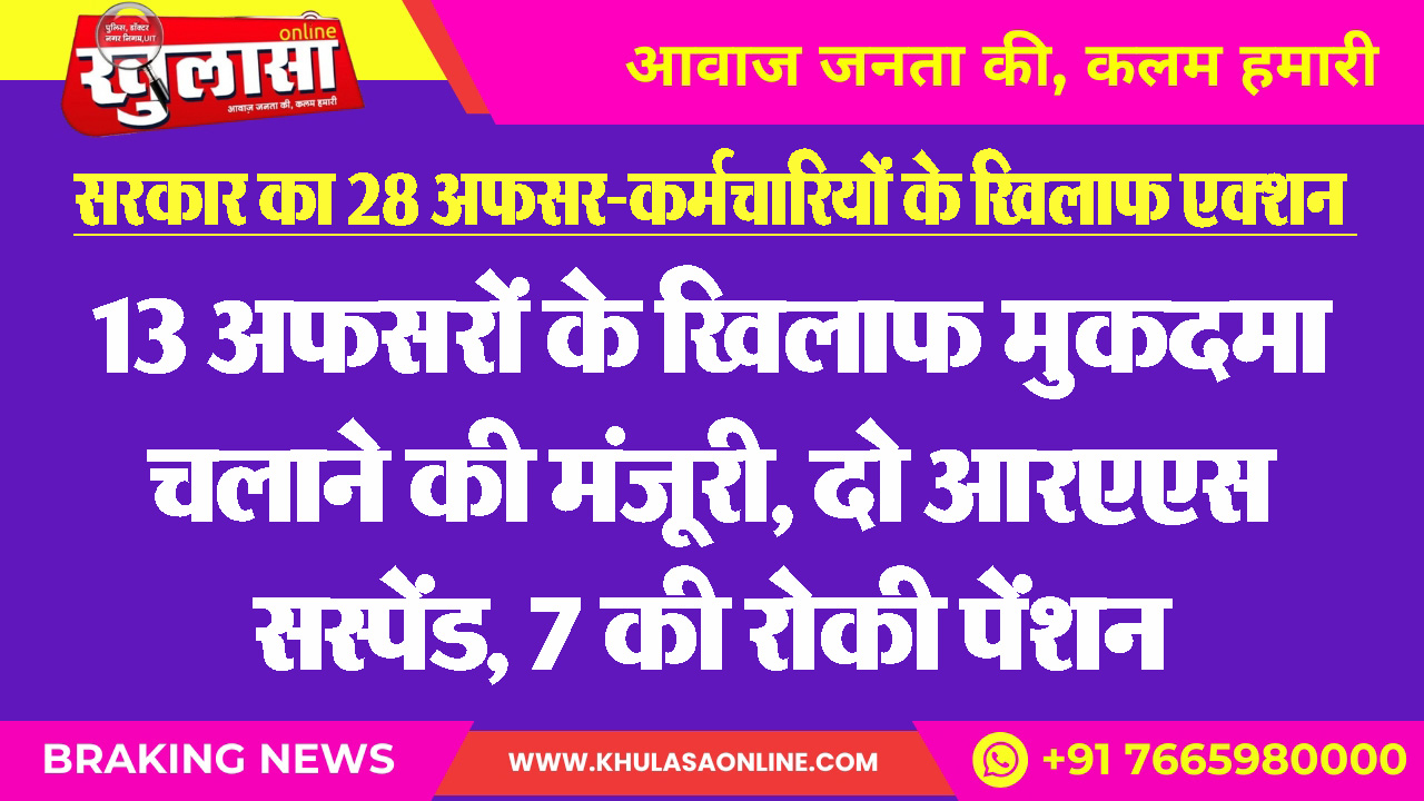 सरकार का 28 अफसर-कर्मचारियों के खिलाफ एक्शन : 13 अफसरों के खिलाफ मुकदमा चलाने की मंजूरी, दो आरएएस सस्पेंड, 7 की रोकी पेंशन