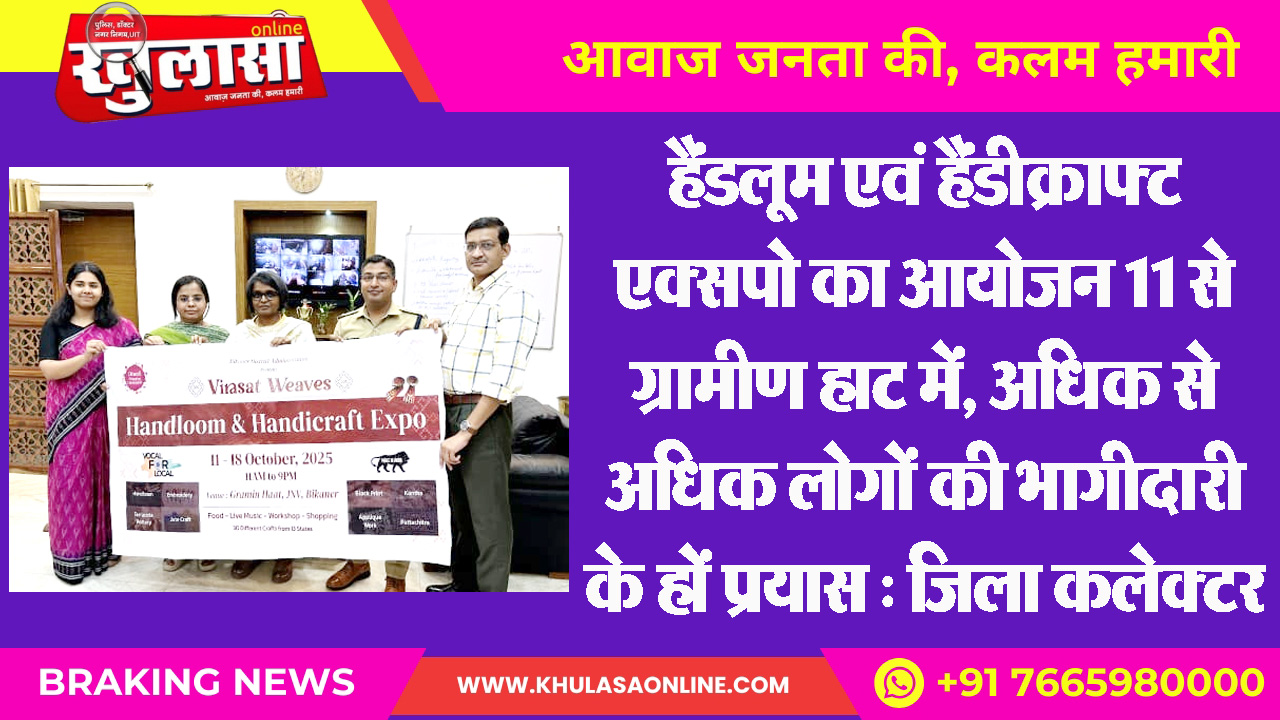 हैंडलूम एवं हैंडीक्राफ्ट एक्सपो का आयोजन 11 से ग्रामीण हाट में, अधिक से अधिक लोगों की भागीदारी के हों प्रयास : जिला कलेक्टर