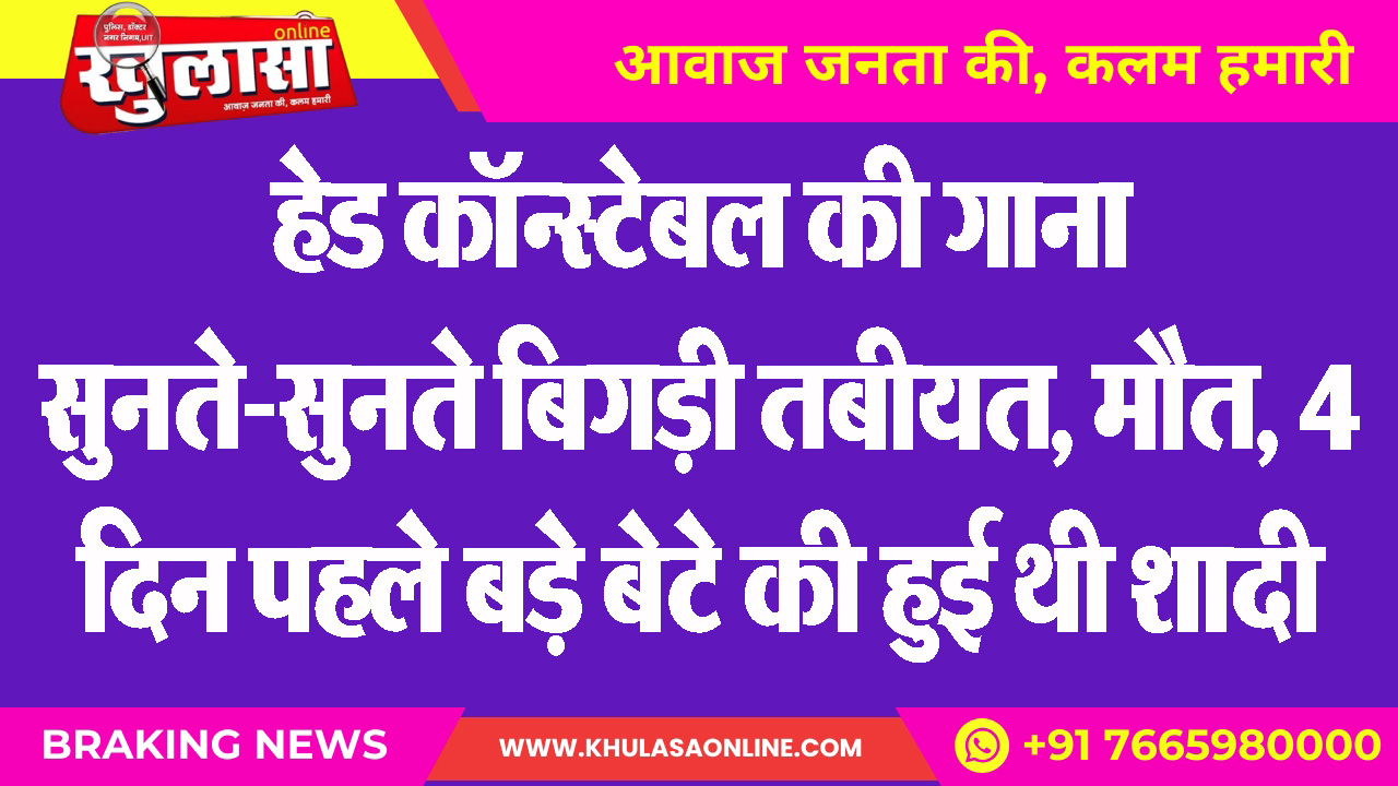 हेड कॉन्स्टेबल की गाना सुनते-सुनते बिगड़ी तबीयत, मौत, 4 दिन पहले बड़े बेटे की हुई थी शादी