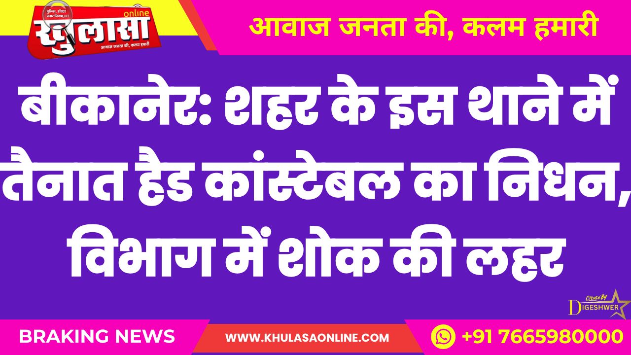 खुलासा न्यूज़, बीकानेर। जिले से पुलिस विभाग के लिए दुखद खबर सामने आई है।