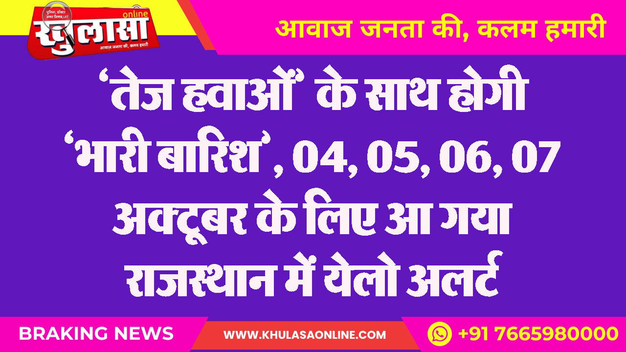 ‘तेज हवाओं’ के साथ होगी ‘भारी बारिश’, 04, 05, 06, 07 अक्टूबर के लिए आ गया राजस्थान में येलो अलर्ट