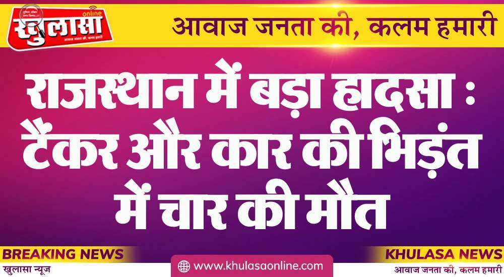 राजस्थान में बड़ा हादसा : टैंकर और कार की भिड़ंत में चार की मौत