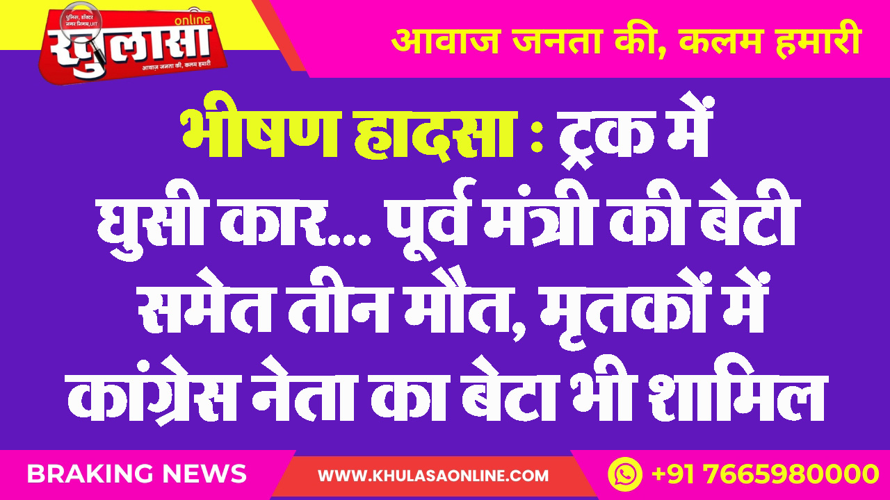 भीषण हादसा : ट्रक में घुसी कार…पूर्व मंत्री की बेटी समेत तीन मौत, मृतकों में कांग्रेस नेता का बेटा भी शामिल