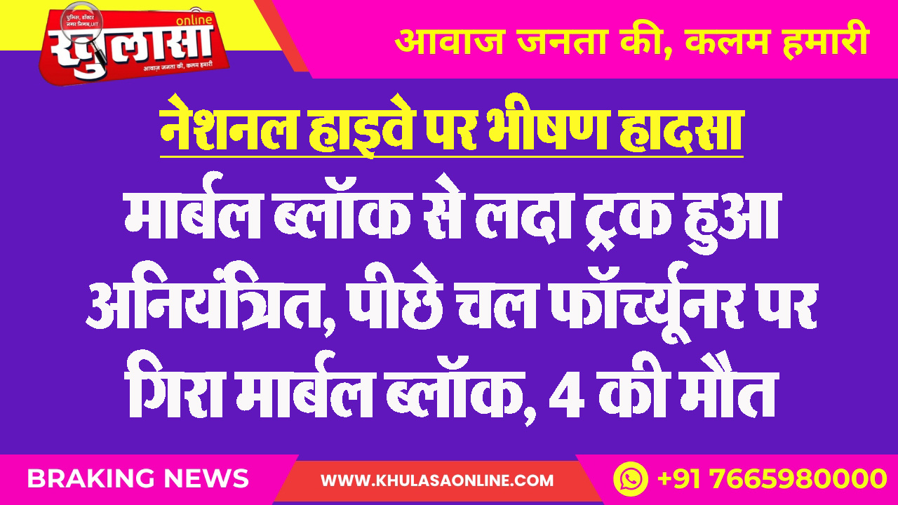 नेशनल हाइवे पर भीषण हादसा : मार्बल ब्लॉक से लदा ट्रक हुआ अनियंत्रित, पीछे चल फॉर्च्यूनर पर गिरा मार्बल ब्लॉक, 4 की मौत