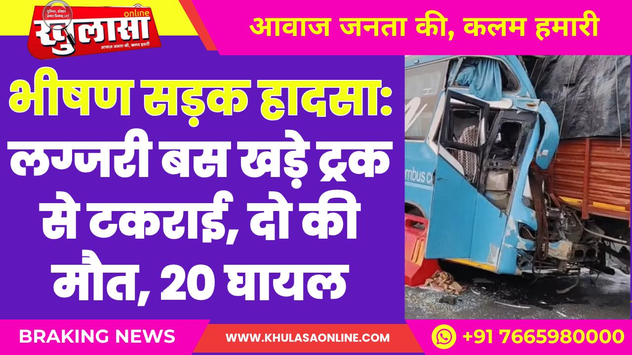 भीषण सड़क हादसा: लग्जरी बस ने खड़े ट्रक से टकराई, दो की मौत, 20 घायल