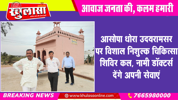 आसोपा धोरा उदयरामसर पर विशाल निशुल्क चिकित्सा शिविर कल, नामी डॉक्टर्स देंगे अपनी सेवाएं