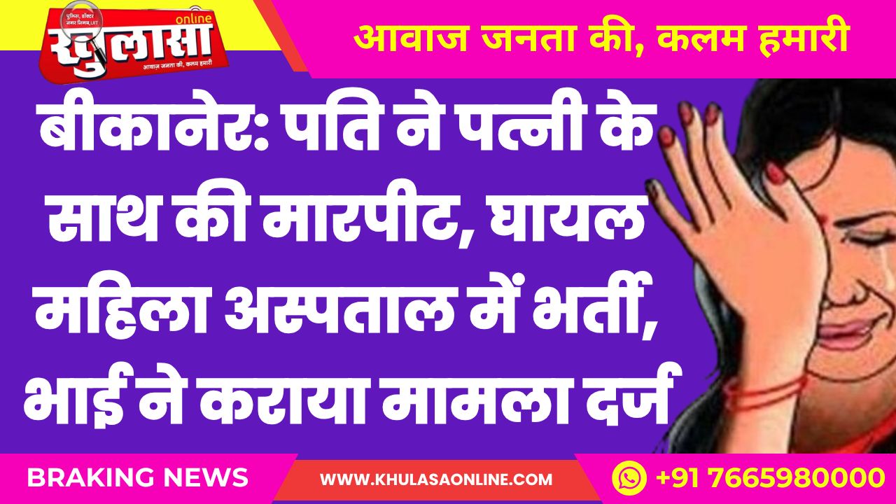बीकानेर: पति ने पत्नी के साथ की मारपीट, घायल महिला अस्पताल में भर्ती, भाई ने कराया मामला दर्ज