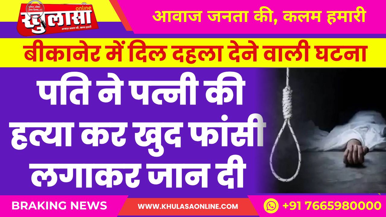 बीकानेर में दिल दहला देने वाली घटना: पति ने पत्नी की हत्या कर खुद फांसी लगाकर जान दी