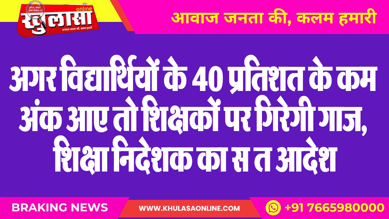 अगर विद्यार्थियों के 40 प्रतिशत के कम अंक आए तो शिक्षकों पर गिरेगी गाज, शिक्षा निदेशक का सख्त आदेश