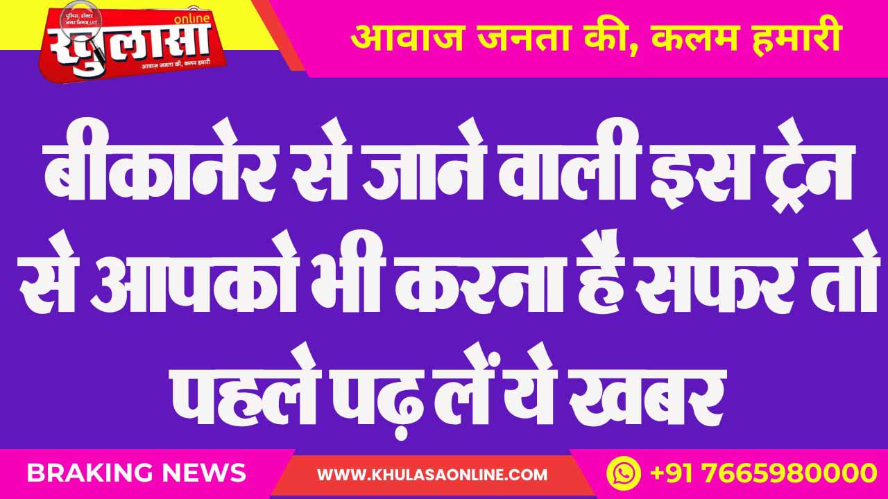 बीकानेर से जाने वाली इस ट्रेन से आपको भी करना है सफर तो पहले पढ़ लें ये खबर