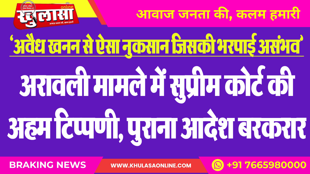 ‘अवैध खनन से ऐसा नुकसान जिसकी भरपाई असंभव’: अरावली मामले में सुप्रीम कोर्ट की अहम टिप्पणी, पुराना आदेश बरकरार