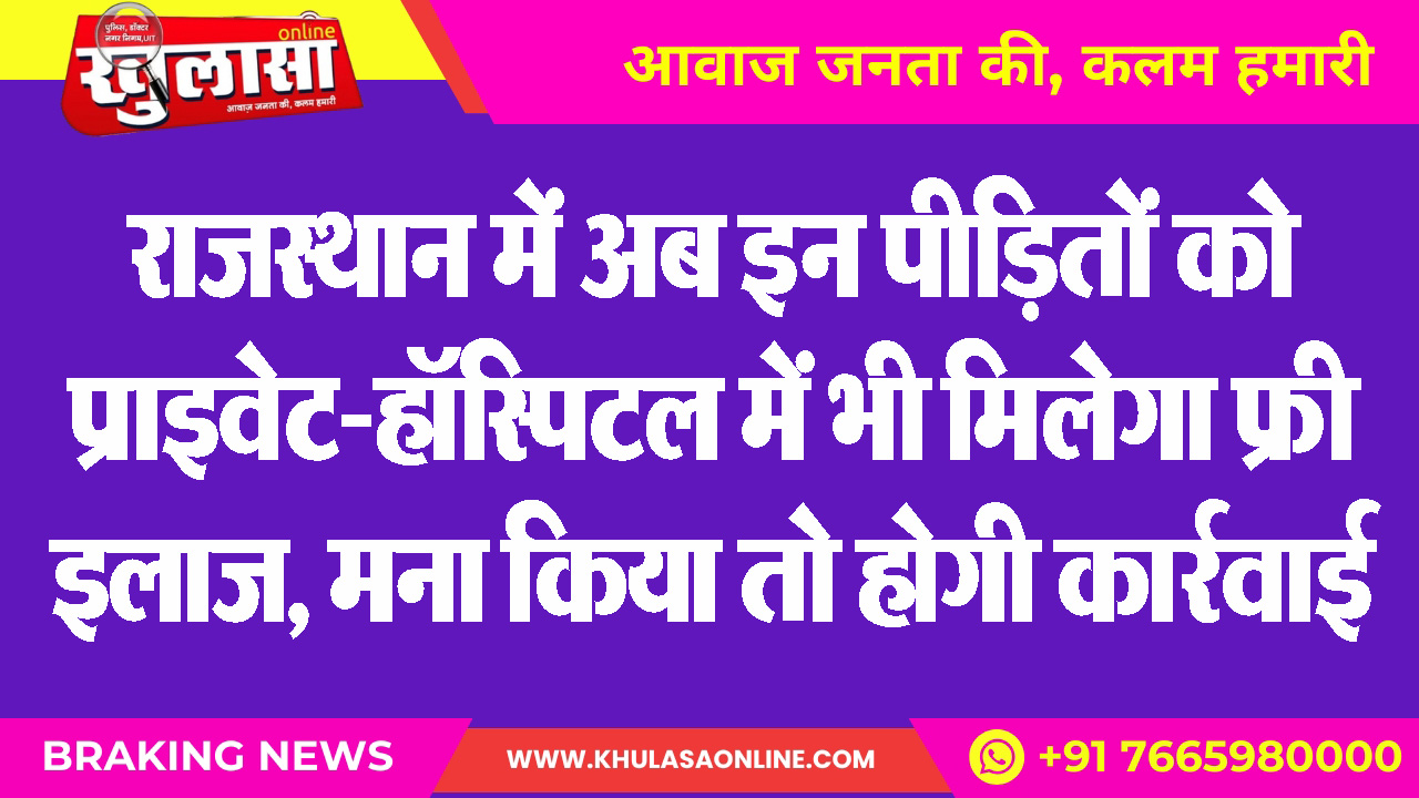 राजस्थान में अब इन पीडि़तों को प्राइवेट-हॉस्पिटल में भी मिलेगा फ्री इलाज, मना किया तो होगी कार्रवाई
