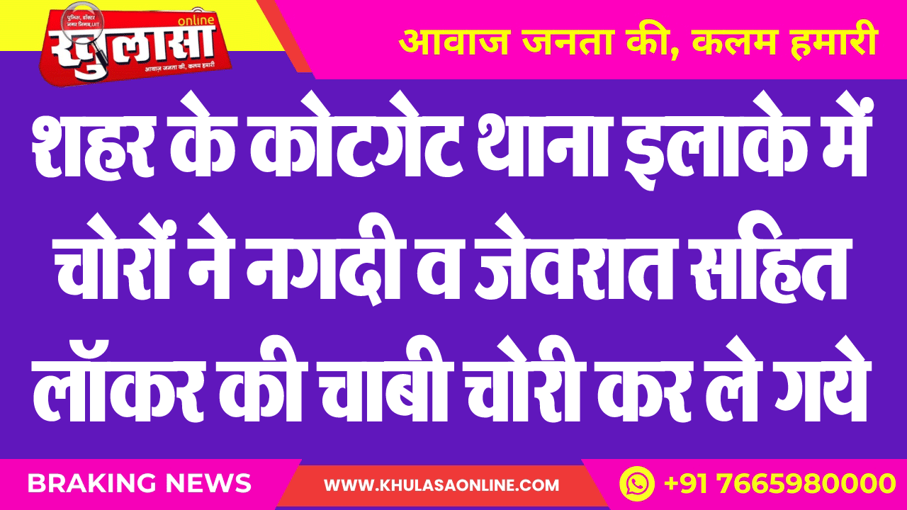 शहर के कोटगेट थाना इलाके में चोरों ने नगदी व जेवरात सहित लॉकर की चाबी चोरी कर ले गये
