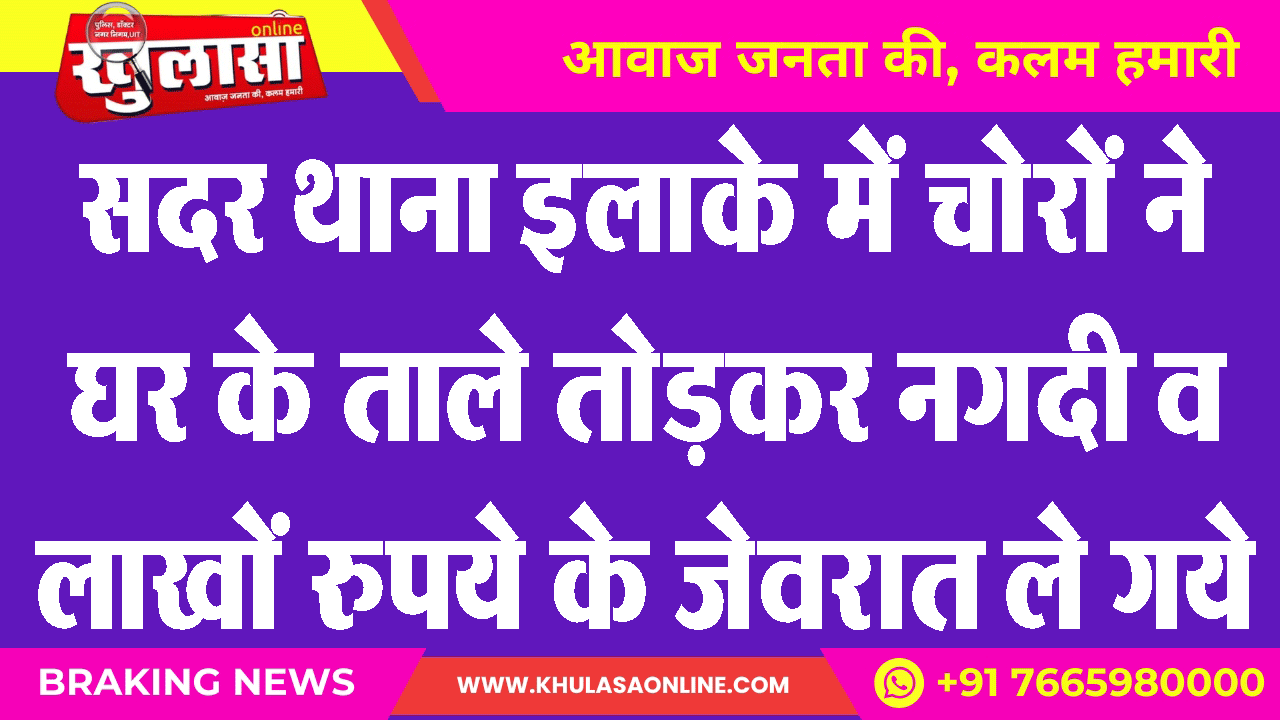सदर थाना इलाके में चोरों ने घर के ताले तोडक़र नगदी व लाखों रुपये के जेवरात ले गये