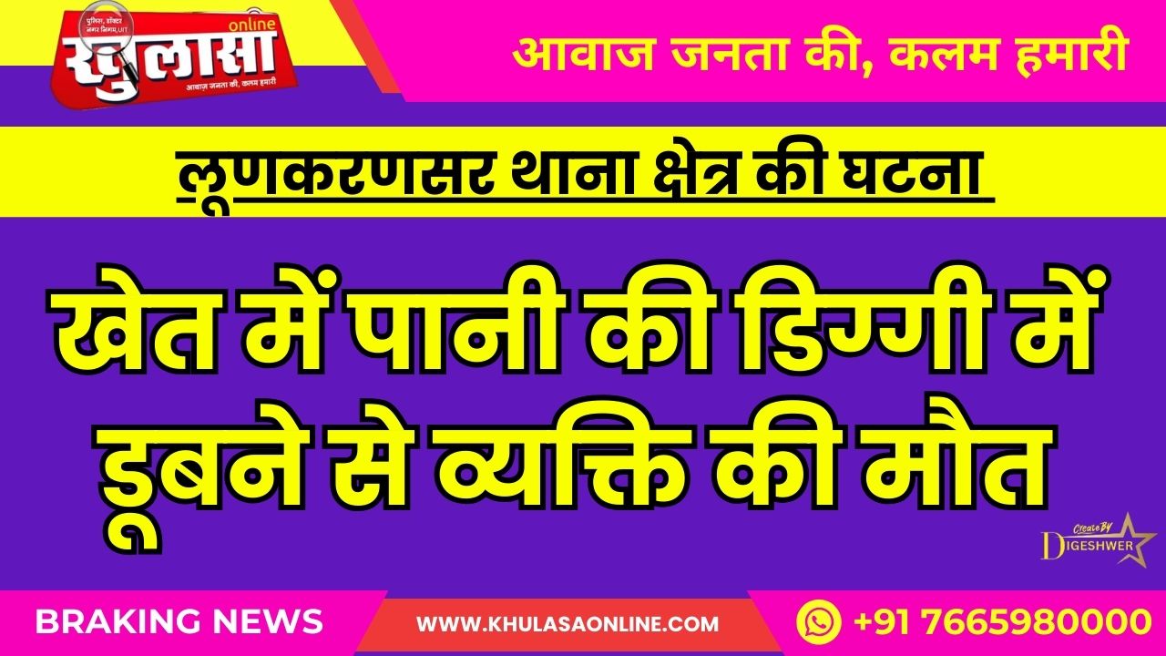 बीकानेर। लूणकरणसर थाना क्षेत्र के चक 266 आरडी में पानी की डिग्गी में डूबने से एक 44 वर्षीय व्यक्ति की मौत हो गई। यह दुखद घटना 27 जनवरी को हुई, जब मृतक खेत में कृषि कार्य कर रहा था।