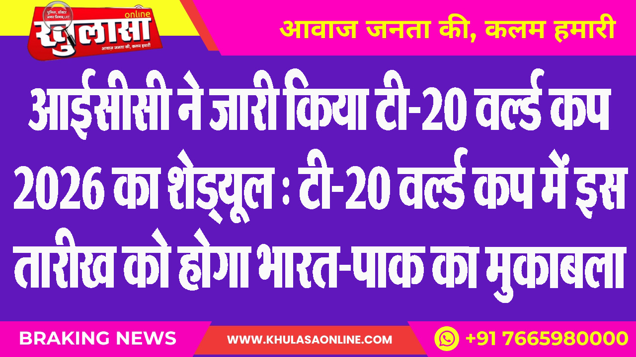 आईसीसी ने जारी किया टी-20 वल्र्ड कप 2026 का शेड्यूल : टी-20 वल्र्ड कप में इस तारीख को होगा भारत-पाक का मुकाबला