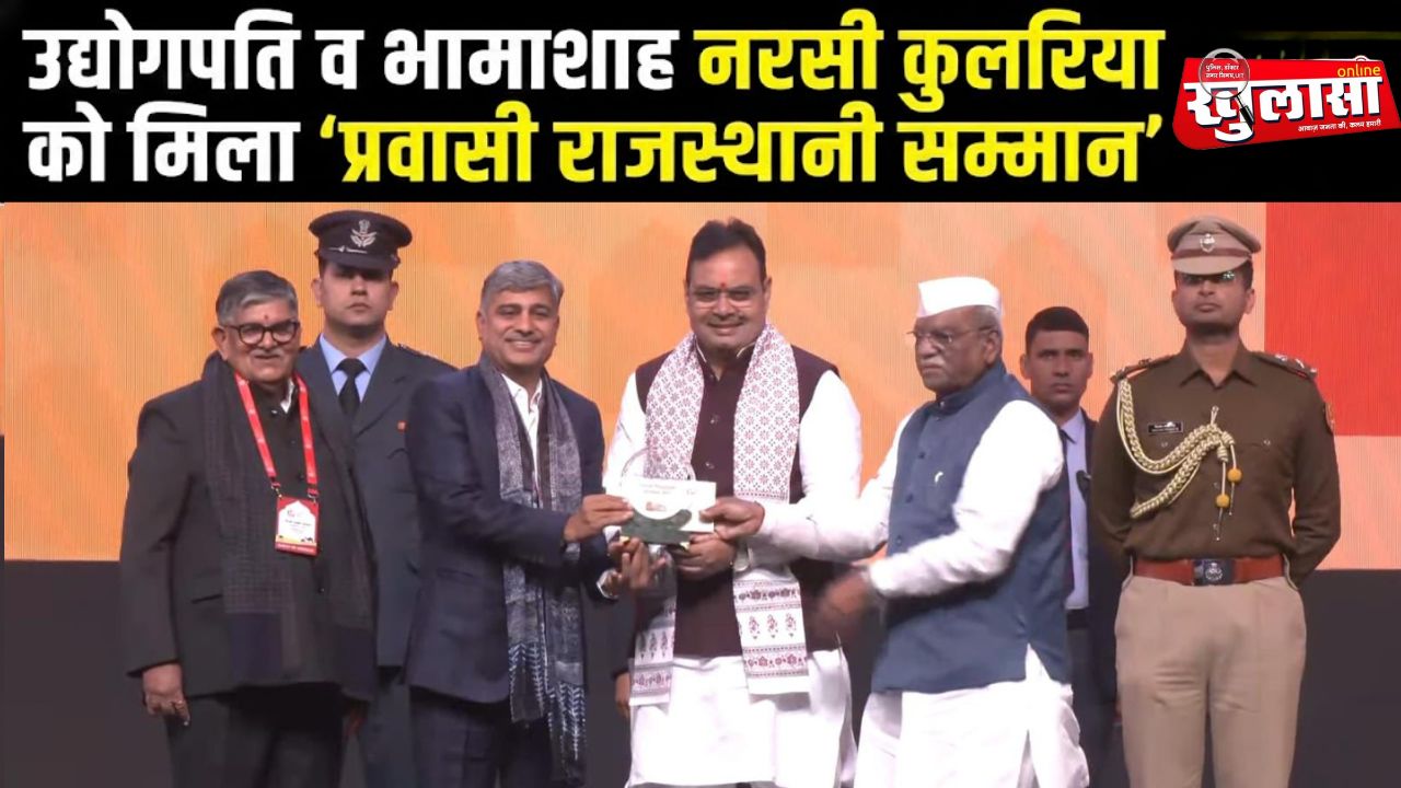जयपुर/बीकानेर। नोखा के मूलवास सीलवा निवासी देश के जाने-माने भामाशाह एवं उद्योगपति नरसी कुलरिया का बुधवार को जयपुर में प्रथम बार आयोजित प्रवासी राजस्थानी दिवस पर सीएम भजनलाल शर्मा, राज्यपाल हरिभाऊ बागड़े एवं पंजाब के राज्यपाल गुलाबचंद कटारिया द्वारा सम्मान किया गया। नरसी ग्रुप के चैयरमेन नरसी कुलरिया को प्रवासी राजस्थानी सम्मान से नवाजा गया। प्रवासी राजस्थानी दिवस पर राजस्थान में एक लाख करोड़ का निवेश हुआ। मुख्यमंत्री भजनलाल शर्मा ने कहा कि- हम प्रवासी राजस्थानियों से अनुरोध करते हैं कि आप राजस्थान में भी काम करें। यहां 2 साल में सब बदल गया है। सीएम ने 14 नए राजस्थान चैप्टर की भी घोषणा की। कॉमर्स मिनिस्टर पीयूष गोयल ने राजस्थानियों से राजस्थान का ब्रांड एंबेसडर बनने और यहां इंवेस्टमेंट लाने की अपील की। बुधवार सुबह 10.30 बजे पहले प्रवासी राजस्थानी दिवस का उद्घाटन मुख्यमंत्री भजनलाल शर्मा ने किया। राजस्थान के मुख्यमंत्री भजनलाल शर्मा ने पिछले साल प्रवासी राजस्थानी दिवस की घोषणा की थी। पहले राजस्थानी दिवस पर आज राजस्थान के बैकग्राउंड वाले दुनिया के बड़े बिजनेसमैन को सरकार ने इनवाइट किया है। इनमें वेदांता ग्रुप के अनिल अग्रवाल, वेलस्पन ग्रुप की दीपाली गोयनका और भामाशाह नरसी कुलरिया सहित कई बिजनेसमैन शामिल रहे। समारोह में केन्द्रीय वाणिज्य मंत्री पीयूष गोयल, उद्योग मंत्री राज्यवर्द्धन सिंह राठौड़ ने भी समारोह को सम्बोधित किया।