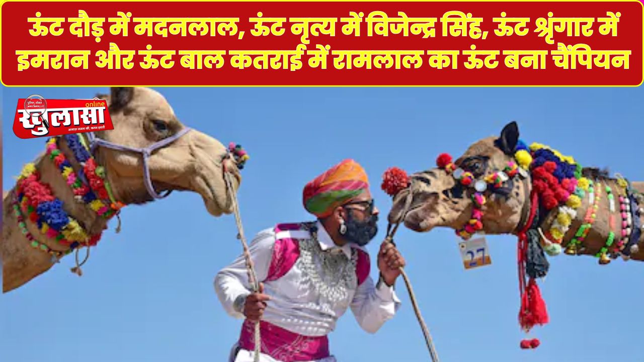 ऊंट दौड़ में मदनलाल, ऊंट नृत्य में विजेन्द्र सिंह, ऊंट श्रृंगार में इमरान और ऊंट बाल कतराई में रामलाल का ऊंट बना चैंपियन
