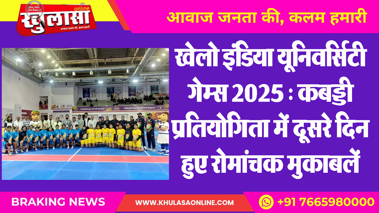 खेलो इंडिया यूनिवर्सिटी गेम्स 2025 : कबड्डी प्रतियोगिता में दूसरे दिन हुए रोमांचक मुकाबलें