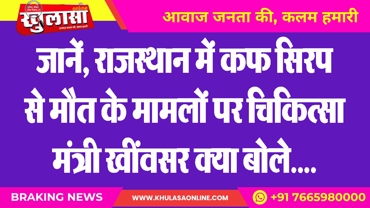 जानें, राजस्थान में कफ सिरप से मौत के मामलों पर चिकित्सा मंत्री खींवसर क्या बोले….