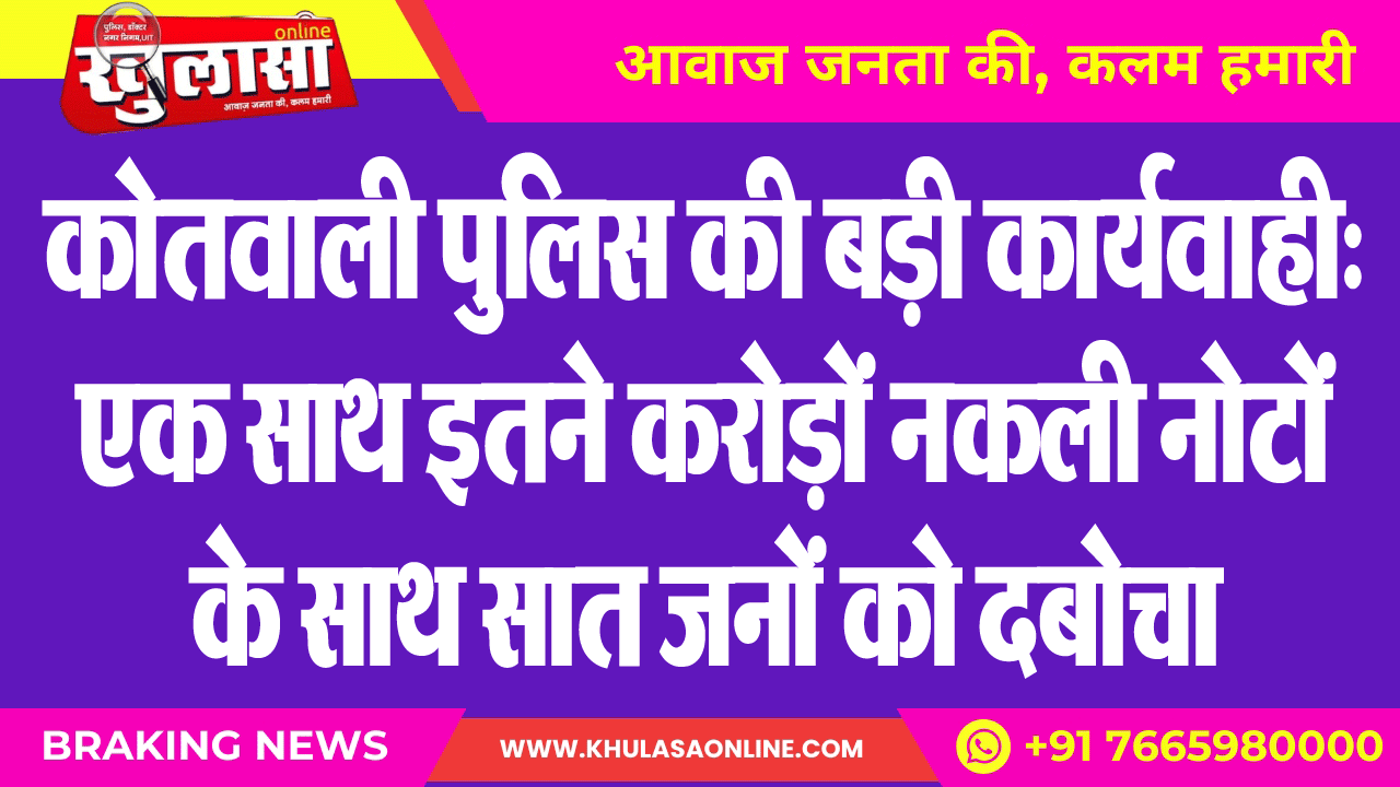 कोतवाली पुलिस की बड़ी कार्यवाही: एक साथ इतने करोड़ों नकली नोटों के साथ सात जनों को दबोचा