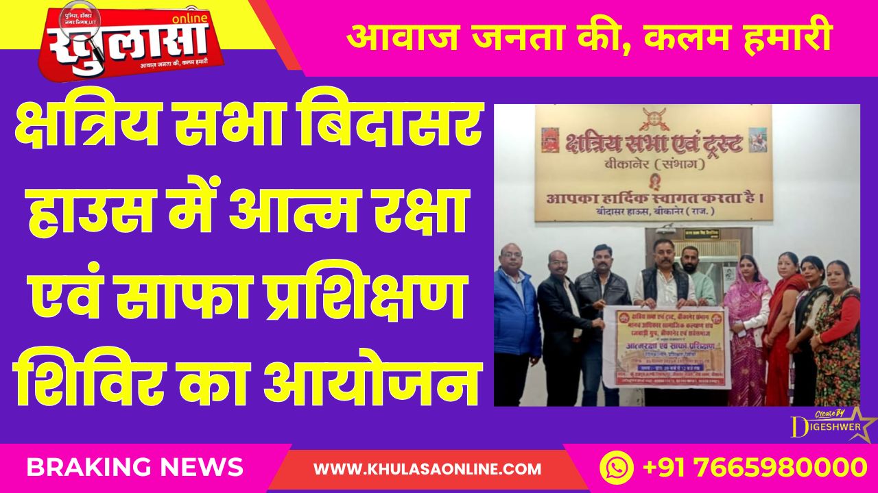 खुलासा न्यूज़। क्षत्रिय सभा एवं ट्रस्ट बीकानेर संभाग द्वारा शीतकालीन अवकाश के अवसर पर सर्व समाज हेतु विशाल आत्मरक्षा एवं साफा बांधने का प्रशिक्षण शिविर 25 दिसंबर से प्रारंभ किया जा रहा है । सभा के अध्यक्ष करण प्रताप सिंह सिसोदिया ने बताया गत वर्षो में लगाए गए शिविरों के रुझान को देखते हुए इस बार शीतकालीन प्रशिक्षण शिविर का आयोजन किया जा रहा है ।