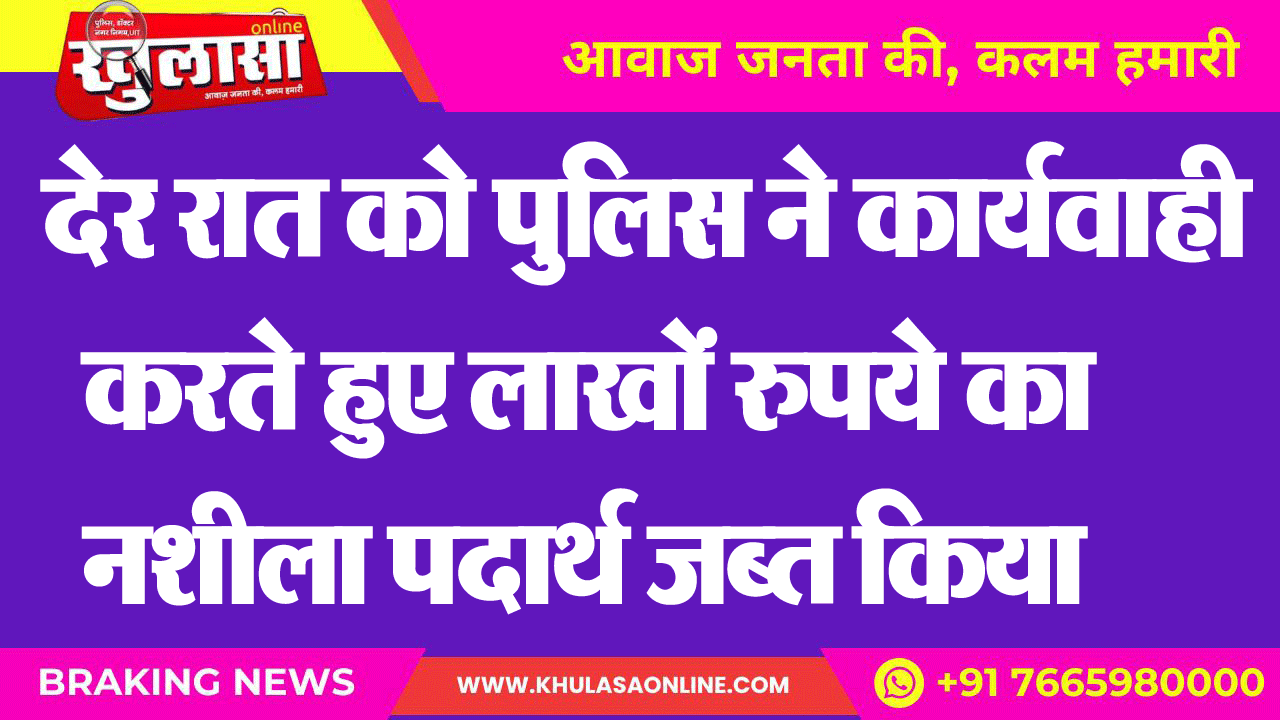 देर रात पुलिस ने कार्यवाही करते हुए लाखों रुपये का नशीला पदार्थ जब्त किया