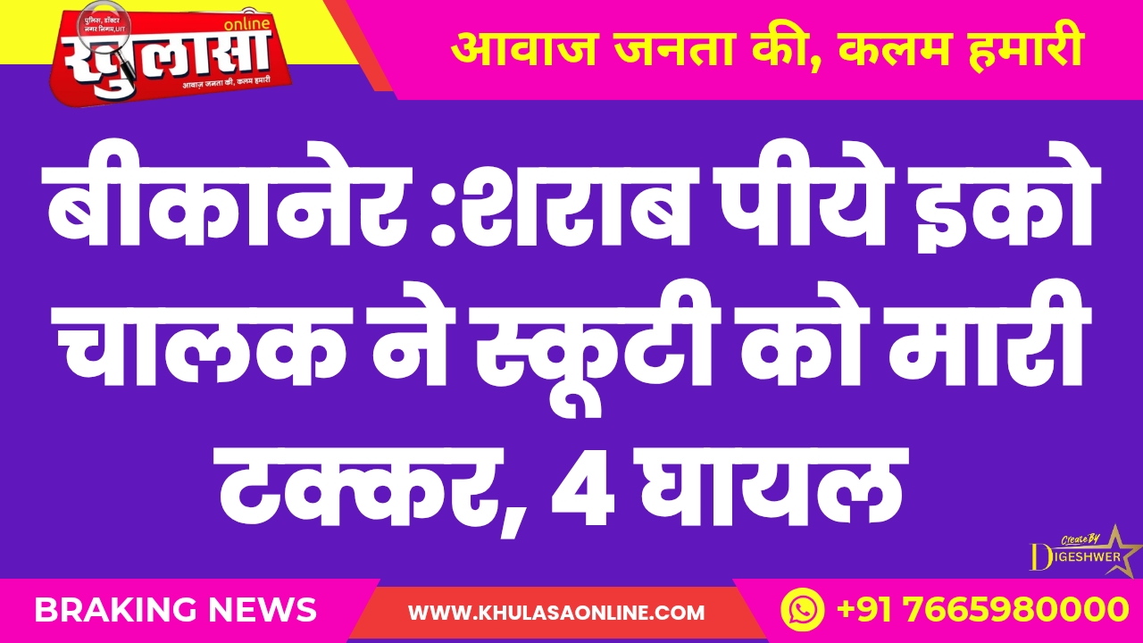 बीकानेर :शराब पीये इको चालक ने स्कूटी को मारी टक्कर, 4 घायल, टक्कर से एक बच्ची नाले में गिरी