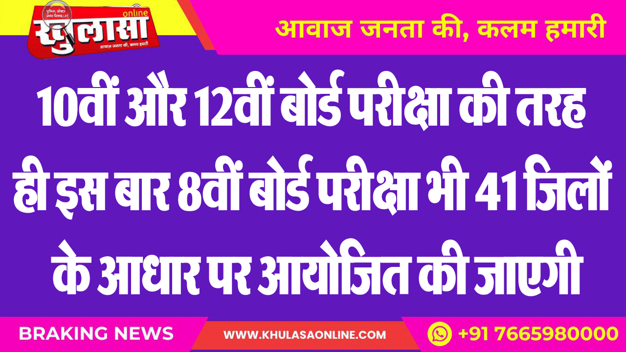 10वीं और 12वीं बोर्ड परीक्षा की तरह ही इस बार 8वीं बोर्ड परीक्षा भी 41 जिलों के आधार पर आयोजित की जाएगी