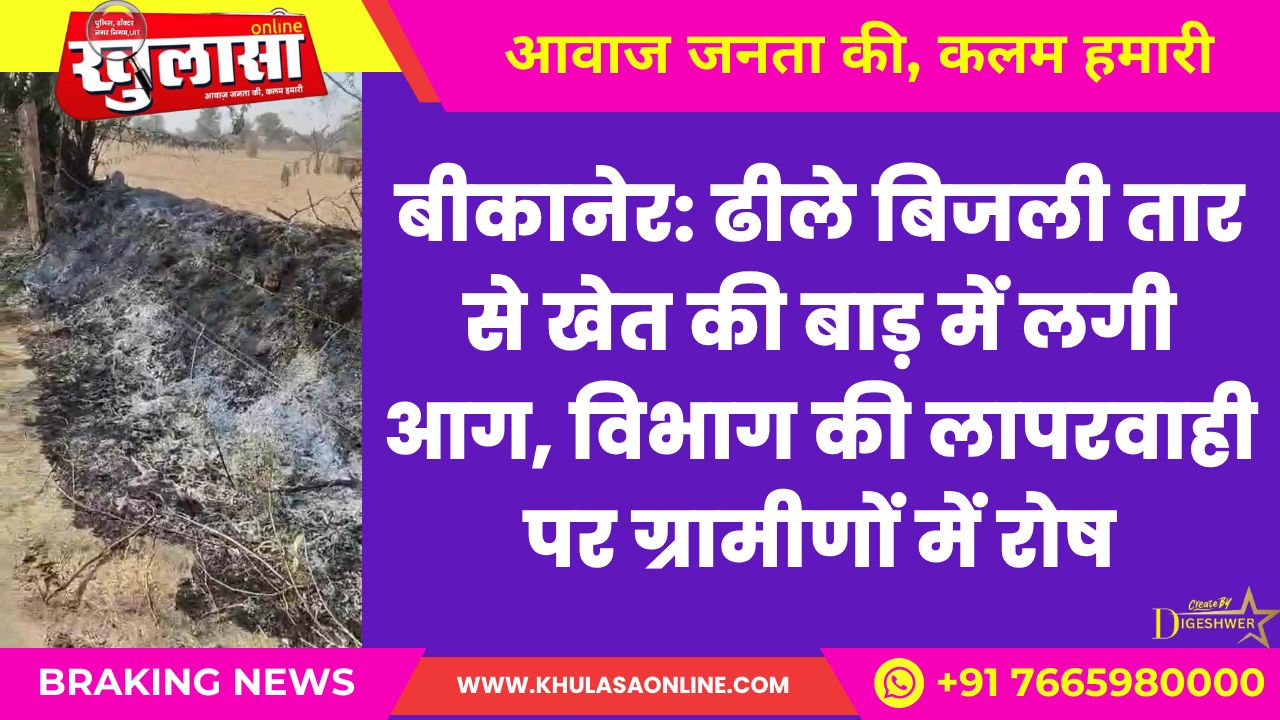 बीकानेर: ढीले बिजली तार से खेत की बाड़ में लगी आग, विभाग की लापरवाही पर ग्रामीणों में रोष