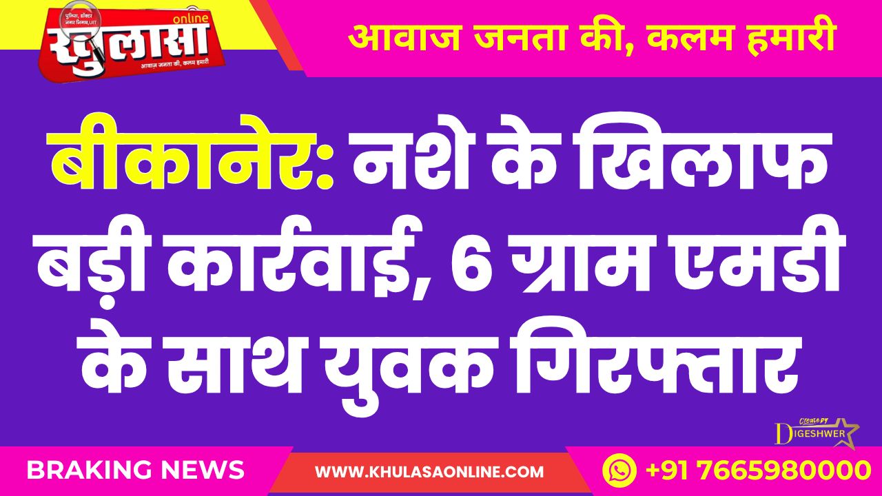 बीकानेर: नशे के खिलाफ बड़ी कार्रवाई, 6 ग्राम एमडी के साथ युवक गिरफ्तार