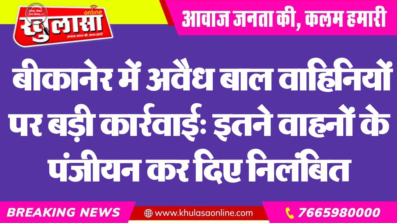 बीकानेर में अवैध बाल वाहिनियों पर बड़ी कार्रवाई: इतने वाहनों के पंजीयन कर दिए निलंबित