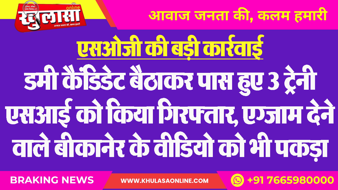 एसओजी की बड़ी कार्रवाई : डमी कैंडिडेट बैठाकर पास हुए 3 ट्रेनी एसआई को किया गिरफ्तार, एग्जाम देने वाले बीकानेर के वीडियो को भी पकड़ा
