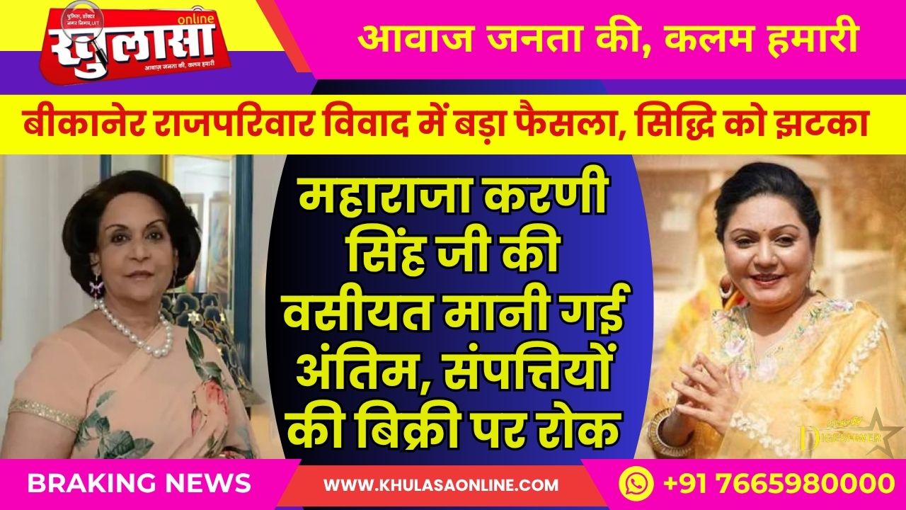 बीकानेर राजपरिवार विवाद में बड़ा फैसला: महाराजा करणी सिंह जी की वसीयत मानी गई अंतिम, संपत्तियों की बिक्री पर रोक