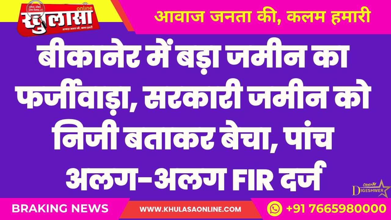 बीकानेर में बड़ा जमीन का फर्जीवाड़ा, सरकारी जमीन को निजी बताकर बेचा, पांच अलग-अलग FIR दर्ज