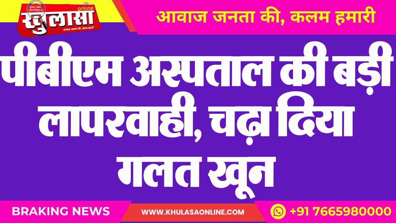 पीबीएम अस्पताल की बड़ी लापरवाही, चढ़ा दिया गलत खून