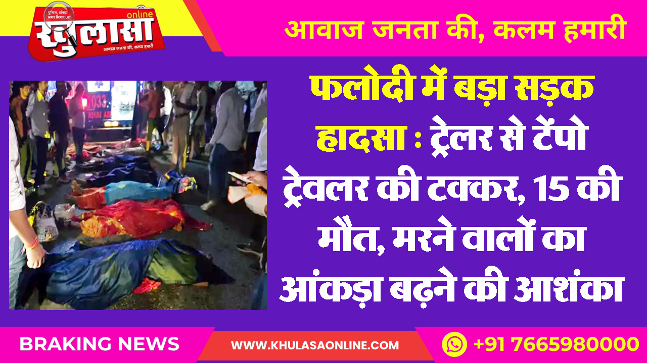 फलोदी में बड़ा सडक़ हादसा : ट्रेलर से टेंपो ट्रेवलर की टक्कर, 15 की मौत, मरने वालों का आंकड़ा बढऩे की आशंका