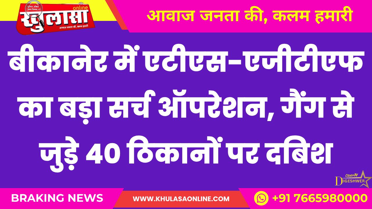 बीकानेर में एटीएस-एजीटीएफ का बड़ा सर्च ऑपरेशन, गैंग से जुड़े 40 ठिकानों पर दबिश